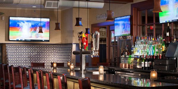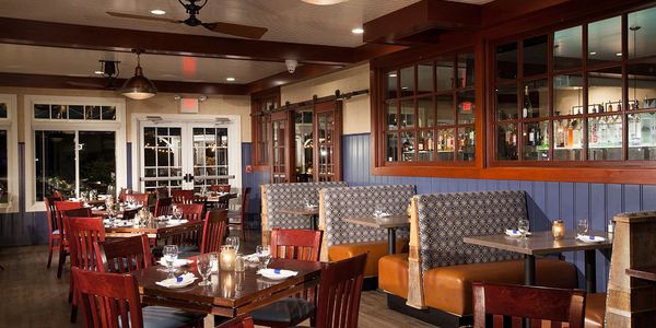 The main bar features a full bar, weekly drink specials, and friendly and outgoing bartenders who are sure to offer you excellent service. The main bar offers a full menu so if the wait is too long or you're looking to have a full three course meal from your bar stool you can do just that. Takeout orders can be placed online or with the host. Rail seating is for beverages only. The booth and high-tops in the main bar area are considered part of the main dining room.